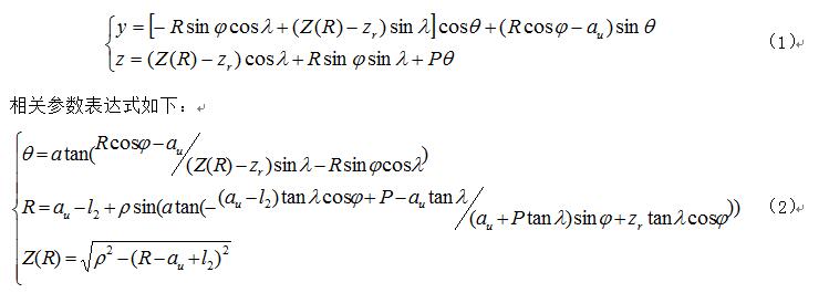 由(yóu)表達式(2)可計算(suàn)出相應參數    ,進一(yī)步代入(rù)表達式(1)中可求(qiú)解圓環(huán)麵包絡圓柱蝸杆(ZC1)的軸截麵齒(chǐ)廓(kuò)坐標。