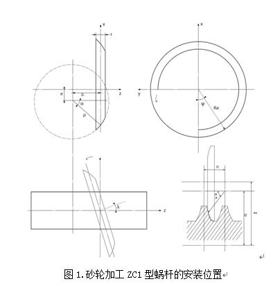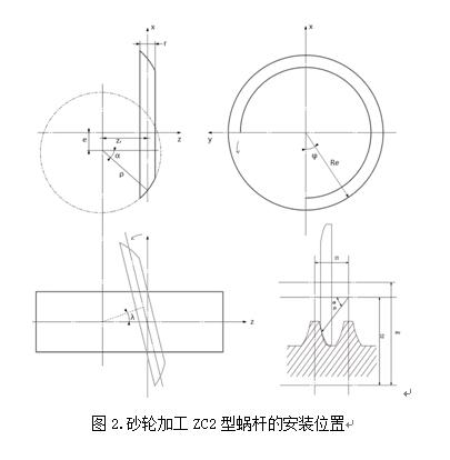 式中: 為砂輪軸線與蝸杆軸線交錯角,由    求出;