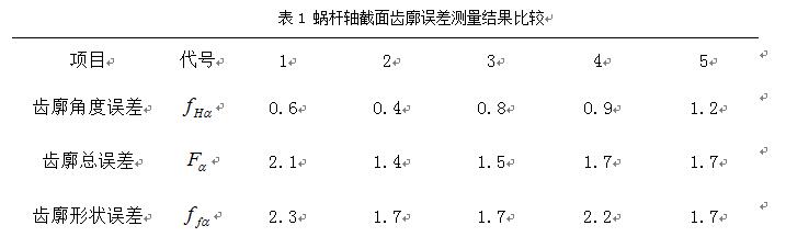 穩定性實驗是對同一ZC1型蝸(wō)杆的同一齒廓(以第一齒右齒麵為(wéi)例)進行多(duō)次(5次)測量,將結果進行比對。結果(guǒ)如表(biǎo)1。