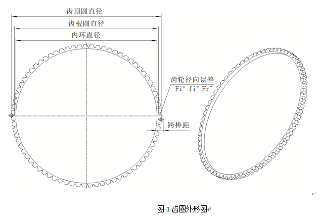 飛輪總成是汽車發動機啟動裝置中重(chóng)要的一個(gè)部件,飛輪總成與離合器壓盤一並起到吸收振動,儲存能量的作用。而薄(báo)壁齒(chǐ)圈又是飛輪總成部分的一個關鍵零件,由於其壁薄,齒多,直徑大等特點(如圖1所示),能夠使飛輪總成(chéng)的(de)安裝結構緊湊,使用壽命(mìng)長,在汽車啟動裝置中(zhōng)起到不可或缺的作用。然而由於這類齒輪形(xíng)狀的特殊性,環形齒輪齒厚變化較大(dà),外形尺寸變形較為嚴重,導致齒輪的精度和各項指標難於控製,這樣對傳動係統的(de)精度(dù)有直接影(yǐng)響,同時對於精準的測量出其精度與參數也帶(dài)來了很大難度。