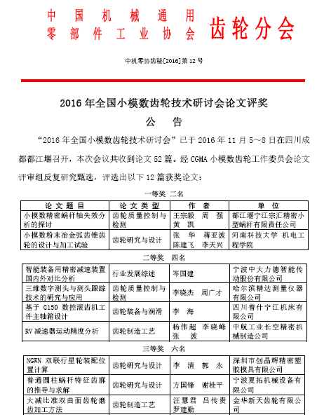 2016年11月5-8日(rì),“2016年全國小(xiǎo)模數齒輪技術研討會”成功在四川都江堰(yàn)召開,香蕉91视频公司在行業會議中發表了具(jù)有技術(shù)創新性的三篇論文:《微小模數齒輪精度測量新方法在齒輪(lún)測量中心上的(de)應用》、 《三維數字測(cè)頭與測頭跟蹤技術的研究與(yǔ)應(yīng)用》、《基於精密測量技術組建測(cè)量線的蝸杆M值自動分選機設計》;其中,《三維(wéi)數(shù)字測頭與測頭跟蹤技術的研(yán)究與(yǔ)應用》榮獲二(èr)等獎。