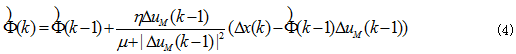 為實現式(2)表示的無模型自適應控製,需要利(lì)用時變偽偏(piān)導